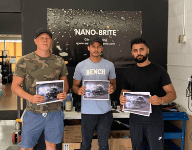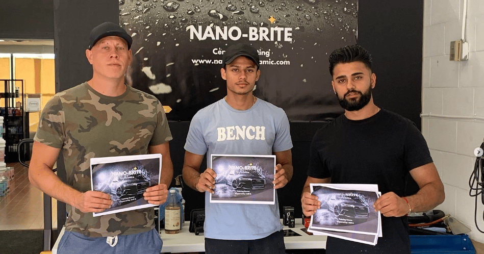 - Content (Day 2): Teaches nanotechnology coating application (Nano-Brite Platinum, EVO, Vision Glass, Leather/Fabric Guard) on paint, wheels, glass, and interiors. Includes marketing and pricing strategies.
